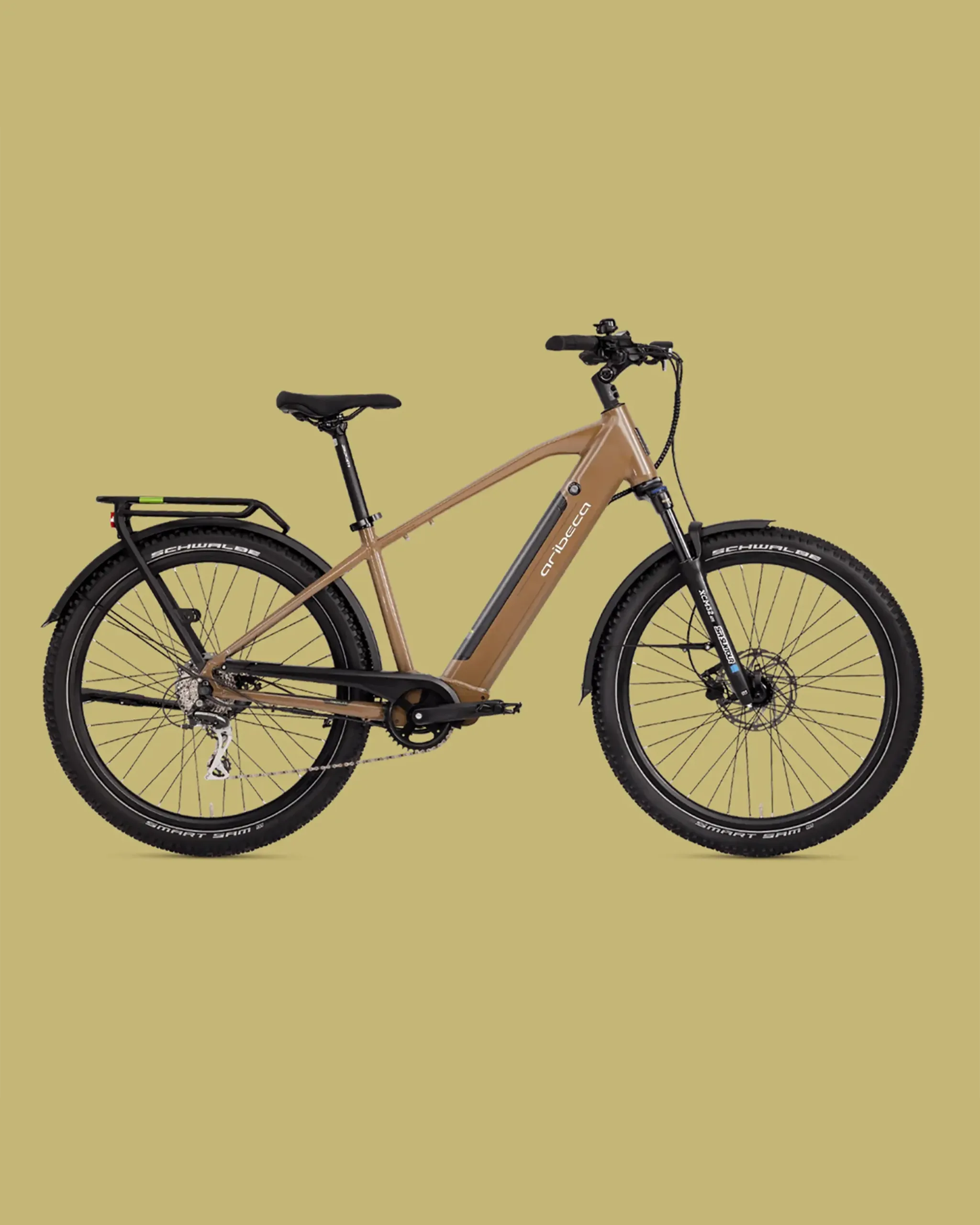 ARIBECA e-bikes are equipped with important functions for your safety and mobility. See and be seen with our attractive front and rear lights, which ensure good visibility in all lighting conditions. The good mudguards keep you as dry as possible and protected from dirt, even when riding in the rain.
